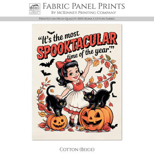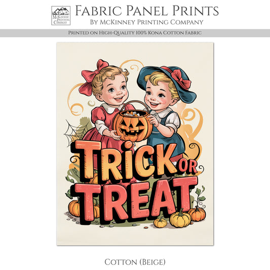 Halloween Fabric Panel - Vintage, Retro, Fall, Children, Kids, Child, Large Print Fabric, Block Print Fabric, Cotton, Quilting, Quilt, Canvas