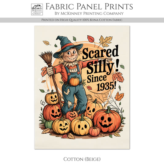 Scarecrow - Halloween Fabric Panel, Vintage, Retro, Fall, Craft, Pumpkin, Large Print Fabric, Block Print, Cotton, Quilting, Quilt, Canvas
