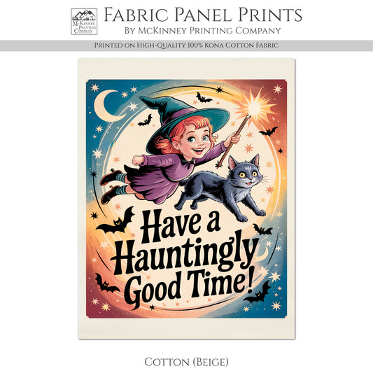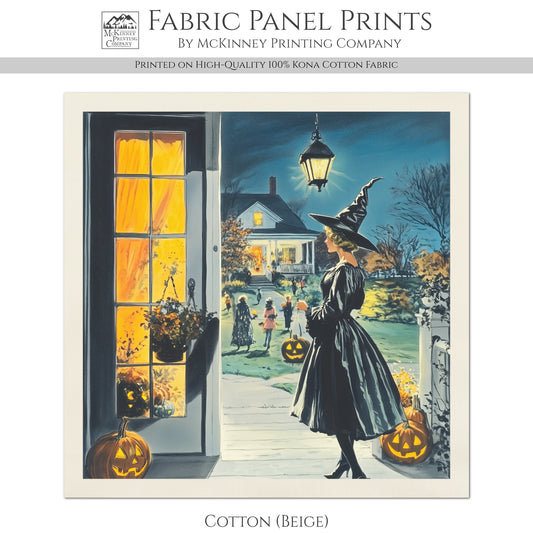 Halloween Fabric Panel - Vintage, Retro, Fall, Craft, Witch, Child, Large Print Fabric, Block Print Fabric, Cotton, Quilting, Quilt, Canvas