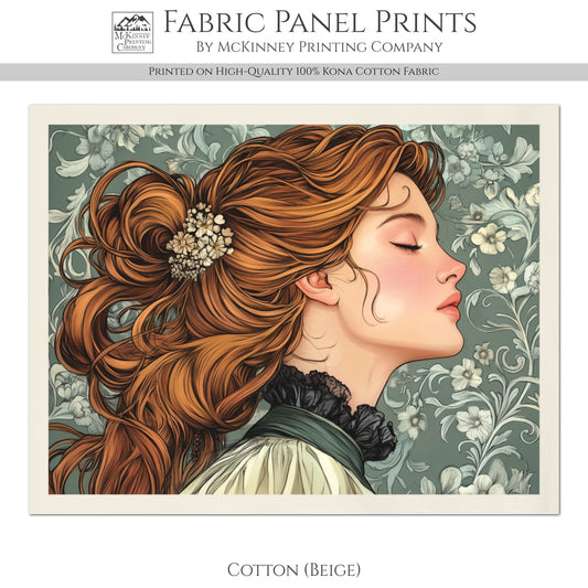 Art Nouveau Fabric - Victorian, Woman, Female, Portrait, French Country Fabric, Panel, Shabby Chic, Décor, Quilt Block, Wall Art, Cotton, Quilting