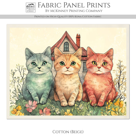 Cat Fabric - Spring Fabric Panel, Floral, Cat Mom, Street Cats, Cotton, Canvas, Quilt Block, Wall Art