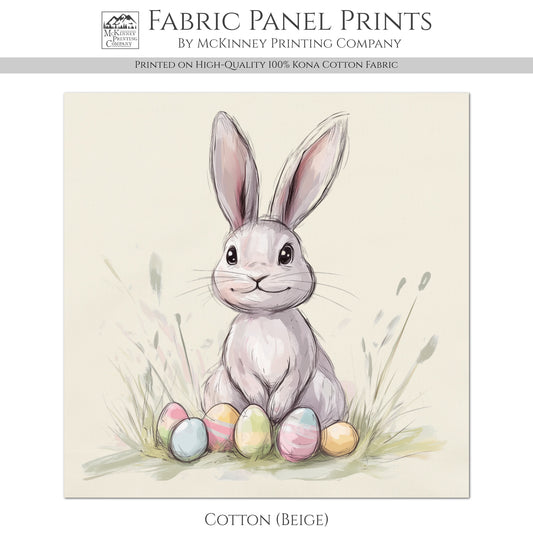 Easter Fabric - Bunny, Rabbit, Eggs, Woodland Animal, Nursery Décor, Quilt Block, Wall Art