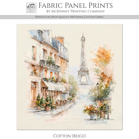 Shabby Chic Fabric - Paris Watercolor, Eiffel Tower, French Country Fabric, Quilt Block, Wall Art, Cotton, Quilting