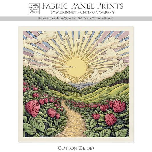 Strawberry Fabric - Farmhouse Watercolor Print, Small | Large Quilt Block, Wall Art, Sewing, Quilting, Spring, Summer