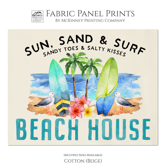 Beach Fabric - Beach House, Summer Watercolor Print, Small | Large Quilt Block, Wall Art