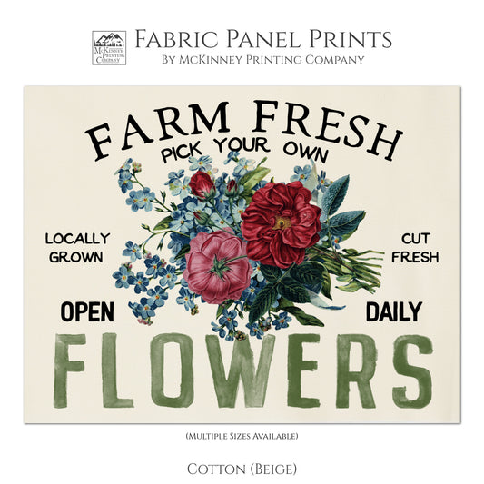 Shabby Chic Fabric - French Country, Floral, Vintage Bike - Fabric Panel Print, Quilt Block