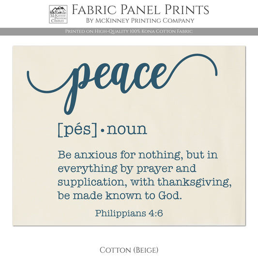 Philippians 4:6 - Peace, Christian Fabric, Quilt Block, Religious Fabric, Scripture, Wall Art, Cotton, Quilting