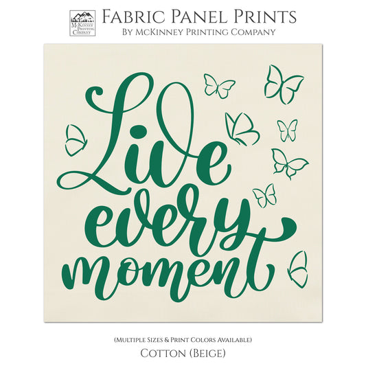 Live Every Moment - Fabric Panel, Quotes About Life, Cotton Print, Quilt Block, Wall Art