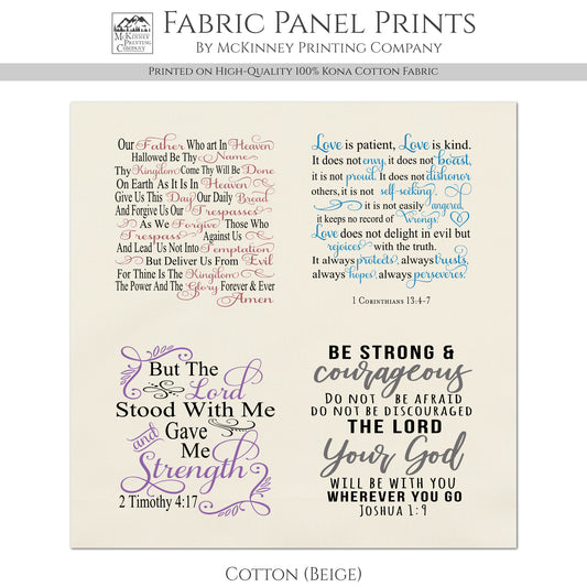 Love is Patient - Christian Fabric, Small Print, Joshua 1:9, Our Father, Prayer Quilt, Pocket Prayer, Quilting, Sewing