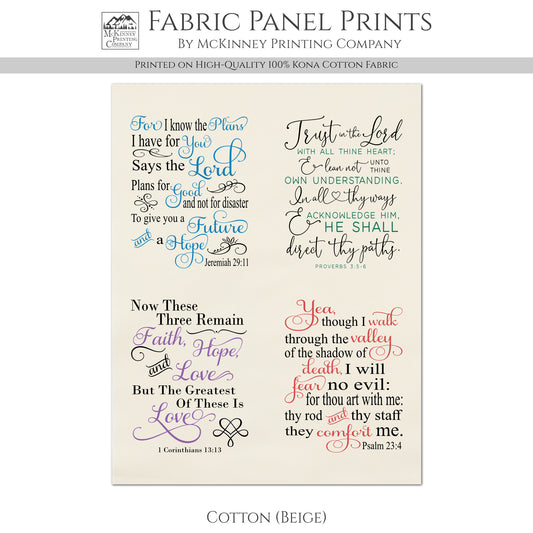 Trust In The Lord - Fabric Panel, Psalm 23, Jeremiah 29, Proverbs, Prayer Quilt, Pocket Prayer, Christian, Quilting