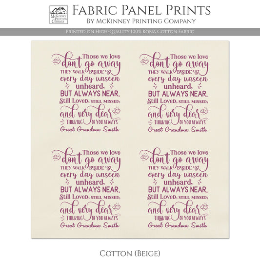 Custom Printed Fabric Panels - Crafts, Wall Art, Prints, Memory Pillow, Clothing, Bags, Quilt Labels