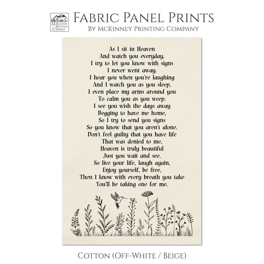 As I Sit In Heaven - Sympathy Gift, Memory Pillow, Poem - Quilt Block, Wall Art