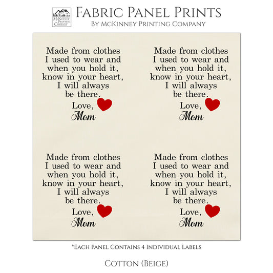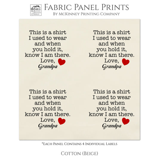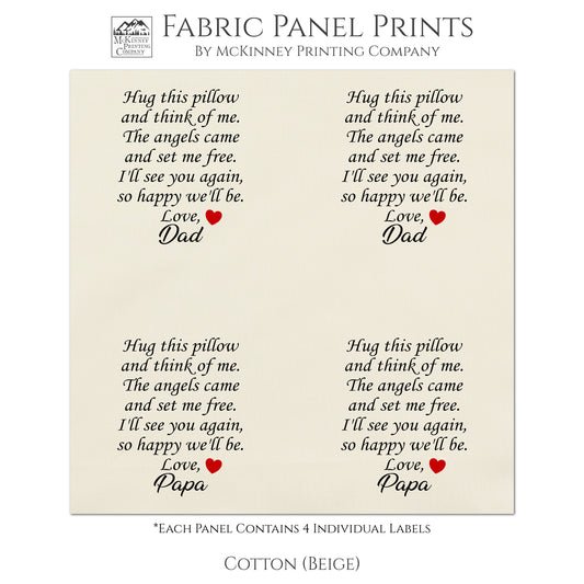 Memory Pillow - Fabric Panel, Patch, TShirt, Quilt, Custom | Personalized, Small Tag