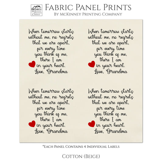 Memory Pillow - Fabric Panel, Patch, Shirt, Quilt, Custom | Personalized, Small Tag