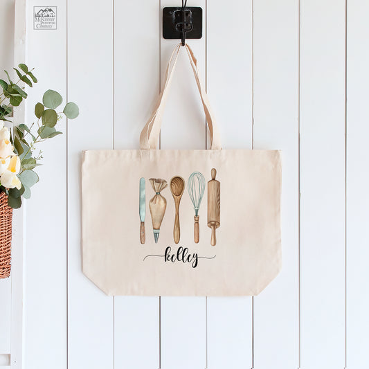 Pastry Chef Gifts - Personalized Canvas Tote Bag with Zipper, Cooking, Baker, Culinary