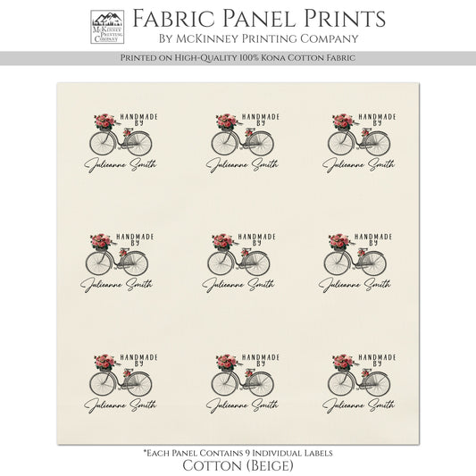 Quilt Labels - Shabby Chic Fabric, Vintage, Bike, Handmade, Fabric Tags, Personalized, Custom, Quilting, Crafting and Sewing Tags