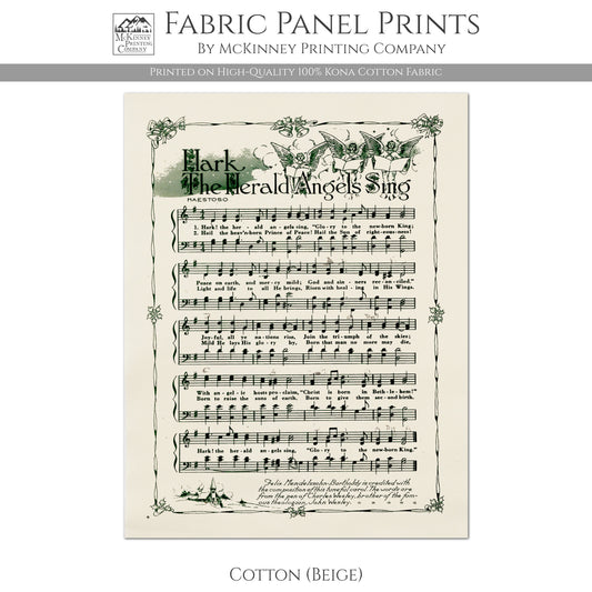Christmas Fabric Panels - Antique Sheet Music, Hark the Herald Angels Sing, Quilt, DIY, Wall Art