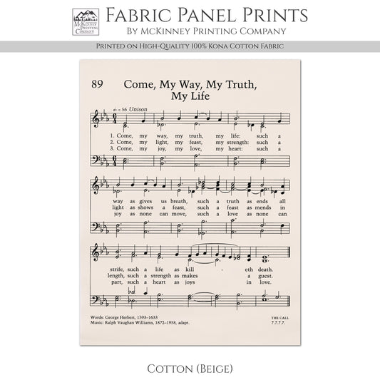 Hymn Wall Art - Christian Fabric, Come, My Way, My Truth, My Life, Antique Sheet Music, Lyrics, Quilting