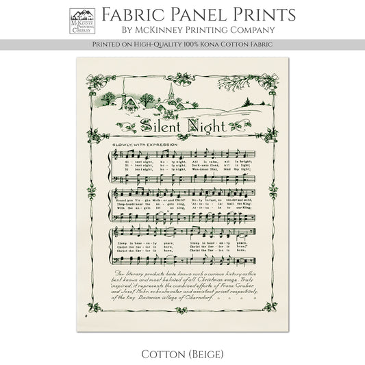 Silent Night - Christmas Fabric Panel, Décor, DIY, Quilt Block, Wall Art, Antique Sheet Music