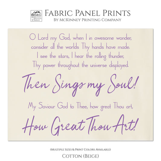 How Great Thou Art - Fabric Panel Print, Quilt Block Panel, Music Lyrics, Christian Wall Art, Quilting