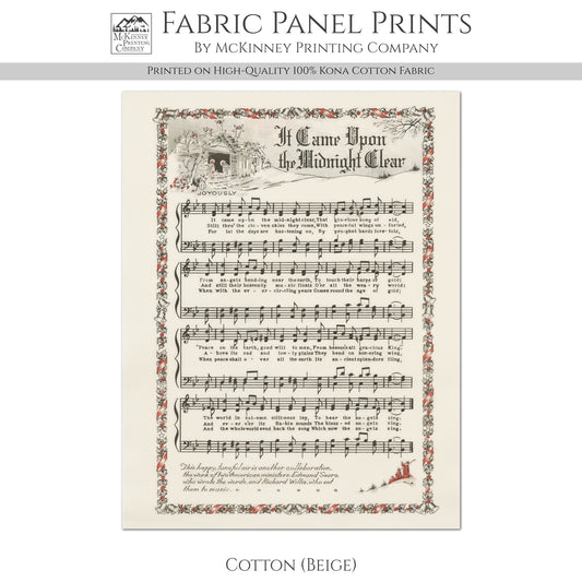 It Came Upon The Midnight Clear - Christmas Fabric Panel, Hymn Wall Art, Sheet Music, Lyrics, Quilting, Quilt, Wall Art, Cotton, Canvas