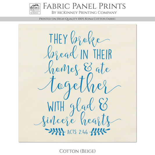 Acts 2:46 - Kona Cotton Fabric, They Broke Bread, Bible Verse, Scripture, Quilting, Wall Art, Canvas, Quilt Block