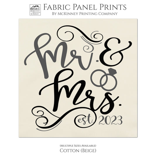 Mr and Mrs - Fabric Panel Print, Wedding, Engagement, Moving In Together, Quilt Block, Quilting