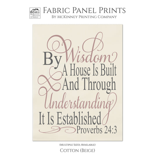 Scripture Fabric - Proverbs 24:3, By Wisdom a House is Built, New Home, Housewarming, Christian, Bible Verse Wall Art, Quilt Block
