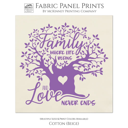 Tree of Life - Fabric Panels, Family, Quilt Block, Cotton Quilting Print, Saying