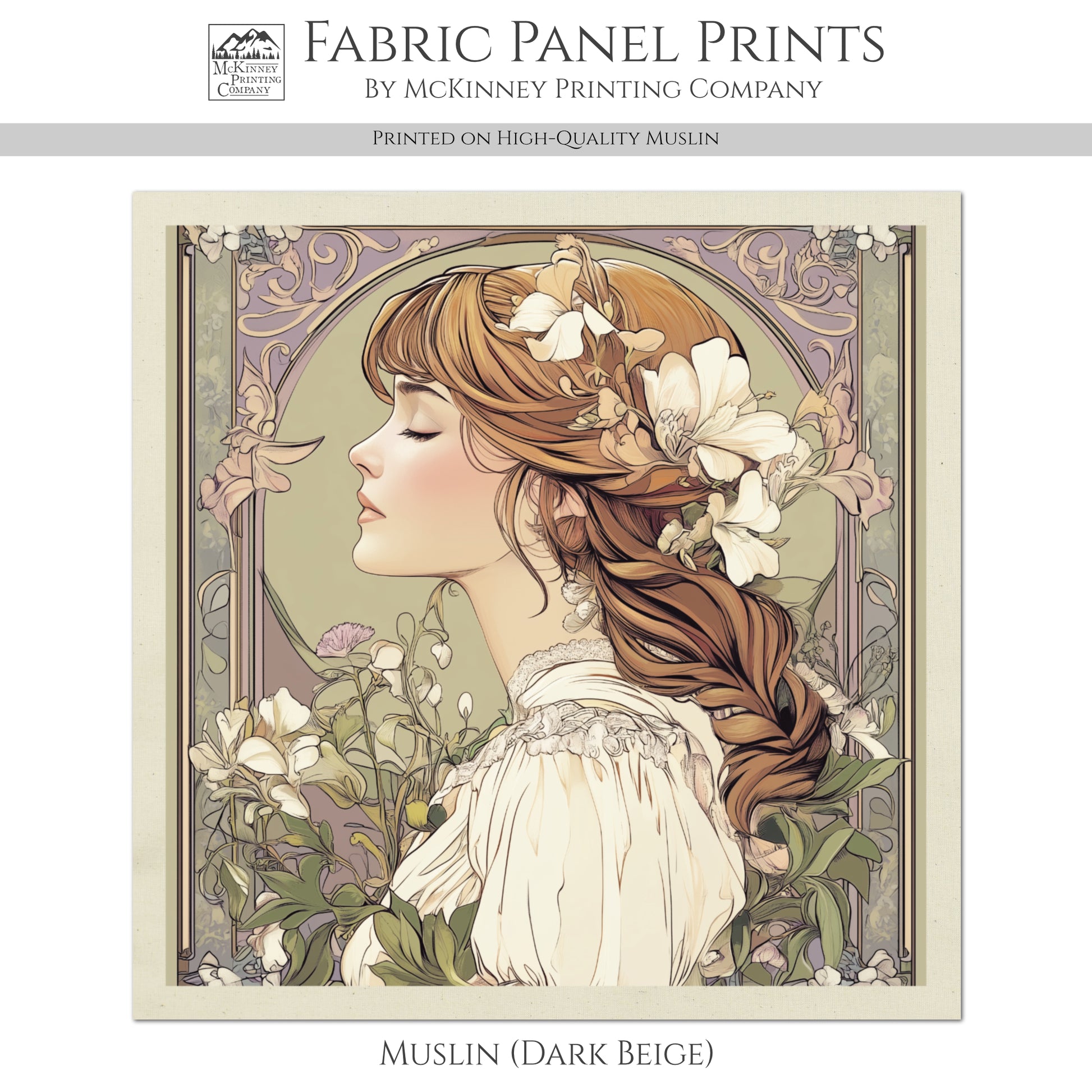 Art Nouveau Fabric - French Country Fabric, Panel, Woman, Portrait, Shabby Chic, Décor, Quilt Block, Wall Art, Cotton, Quilting