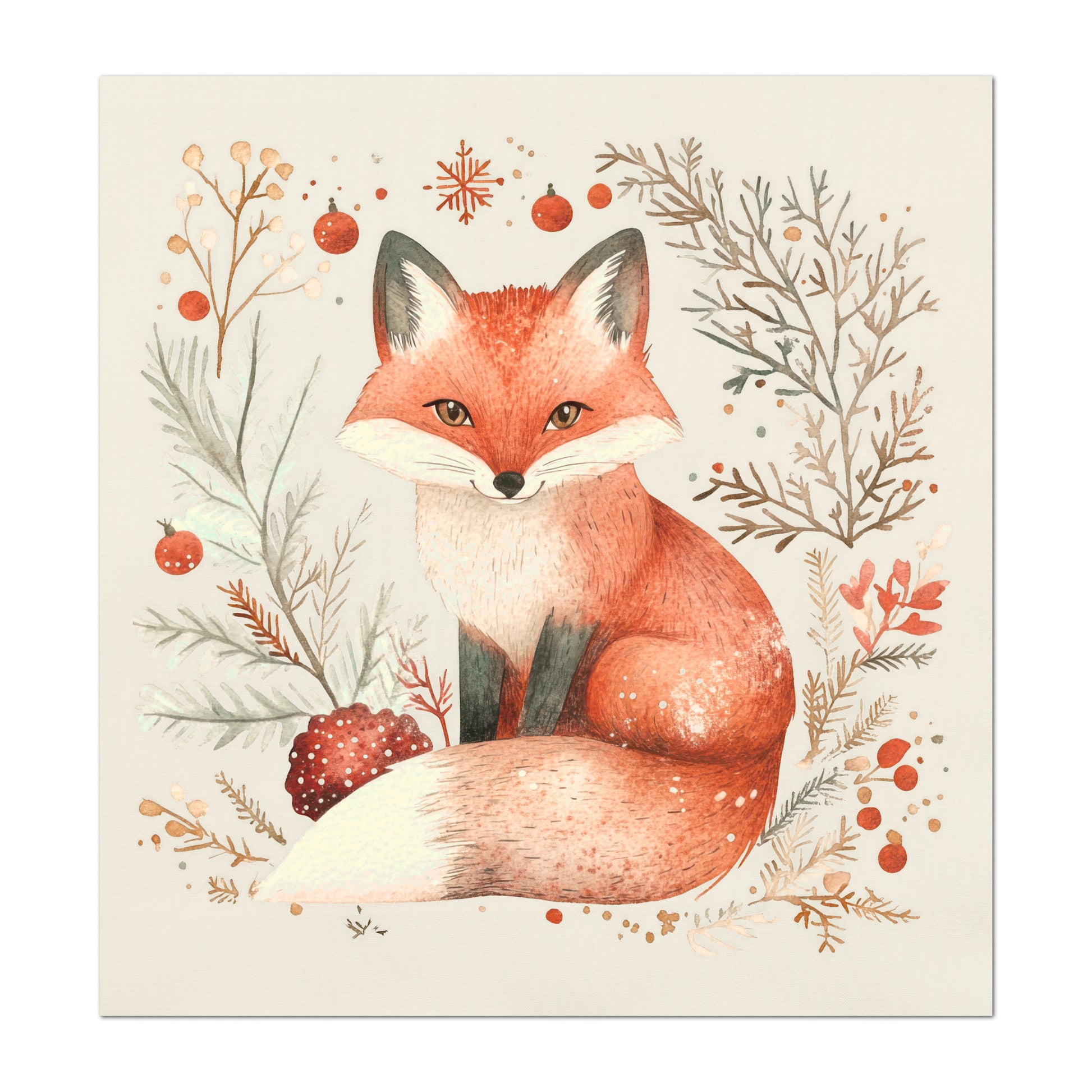 Fox Fabric - Christmas Fabric Panels, Cotton, Baby Fabric Panels, Animal, Winter, Woodland, Wall Art, Large Print, Cotton, Quilting, Quilt