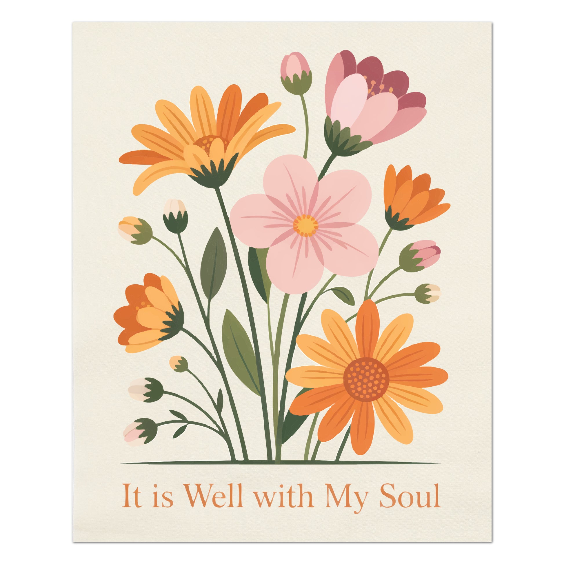 It Is Well With My Soul - Kona Cotton Fabric, Small Floral Print, Block Print Fabric, Large, Music, Cotton, Quilt, Quilting