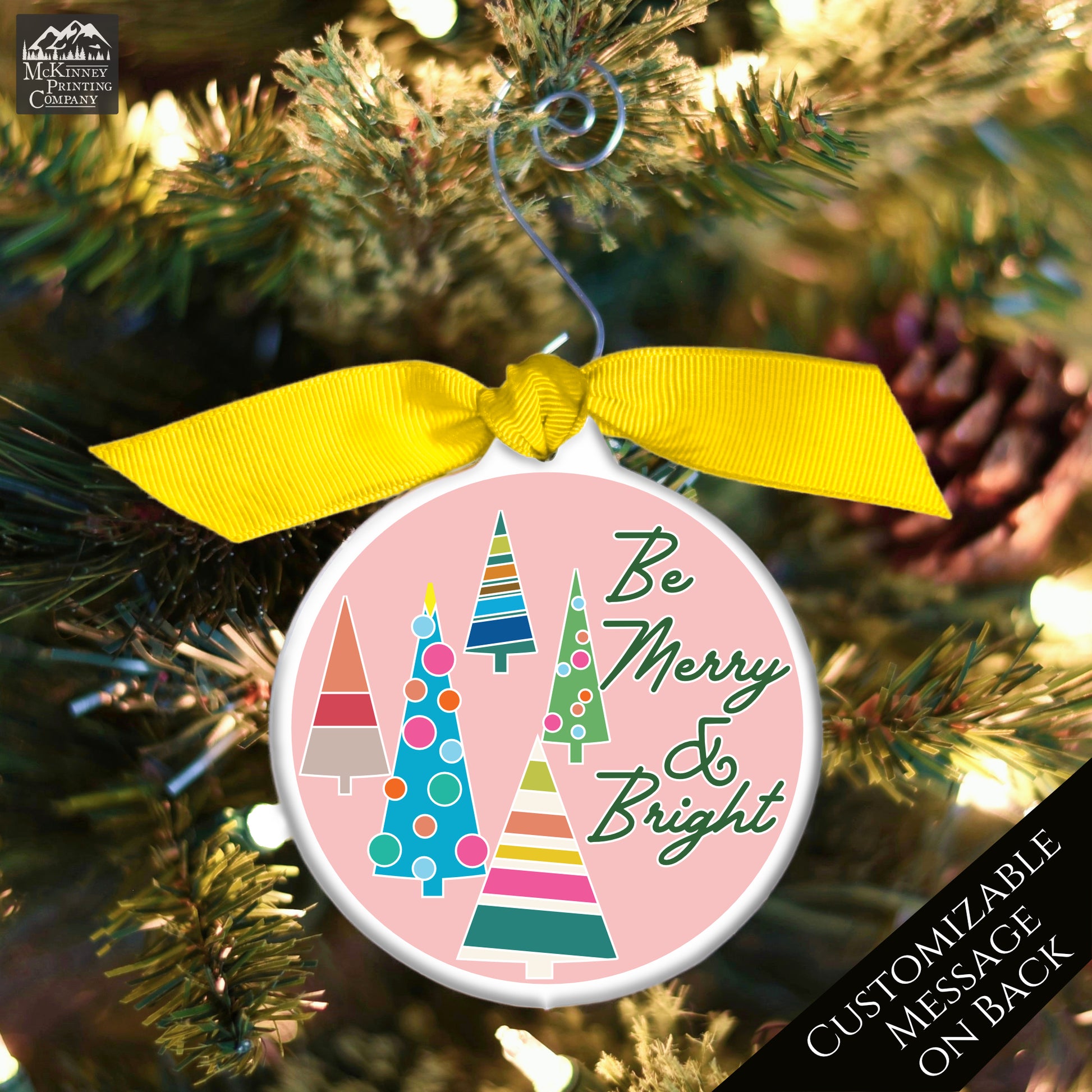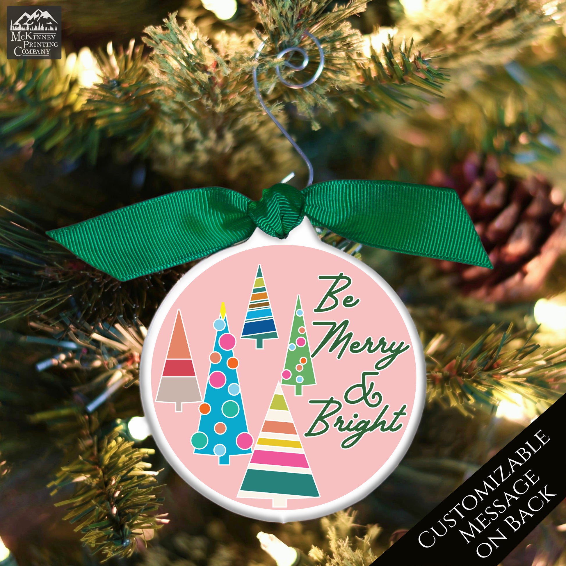This original design is printed on a handmade 3.5” round porcelain Christmas ornament and includes your choice of ribbon color and a convenient decorative hook. Also included is an optional customizable message of your own, (centered on the back of the ornament). It's a personal touch that's sure make this the perfect gift for your loved ones, or, just as a custom addition to your own Christmas Tree!