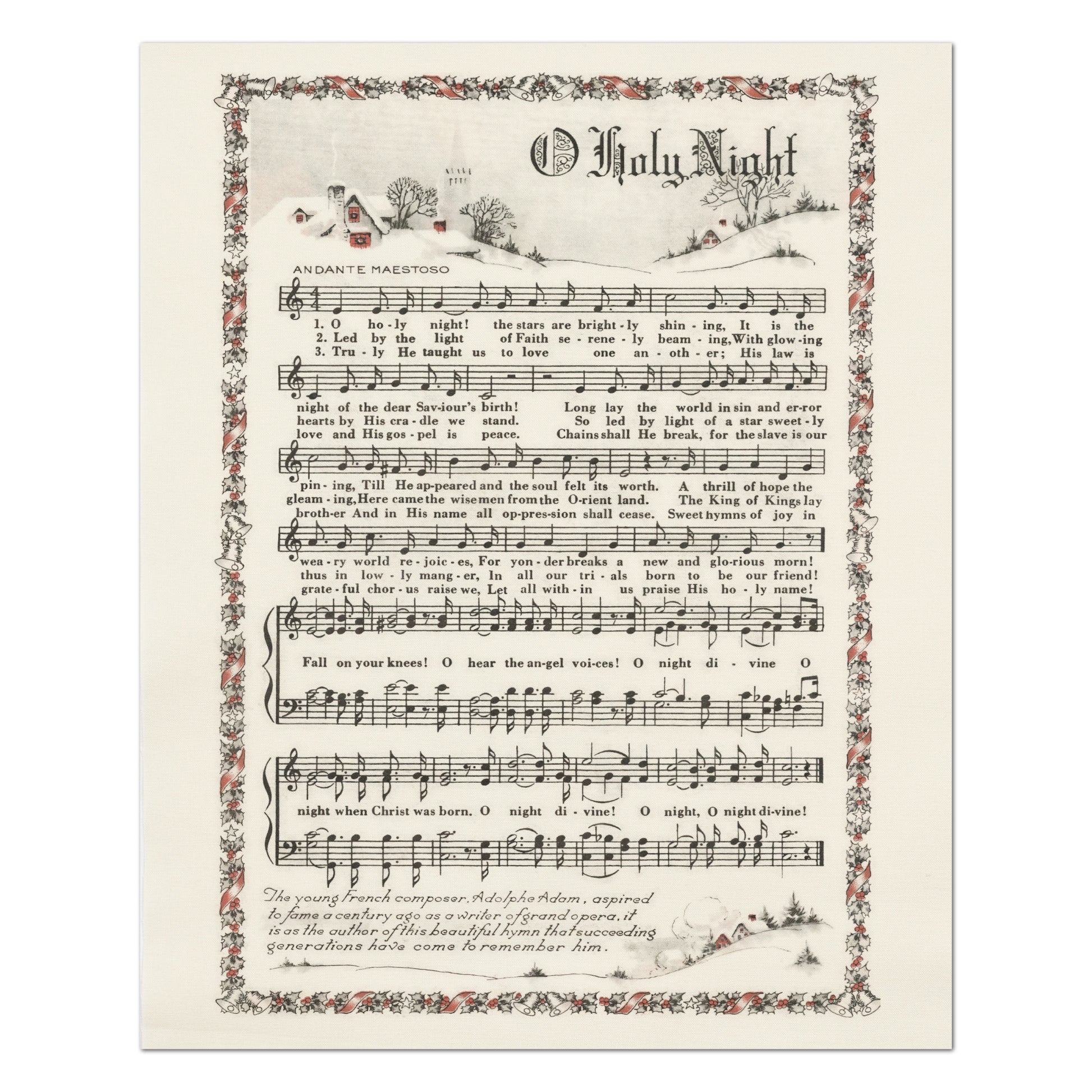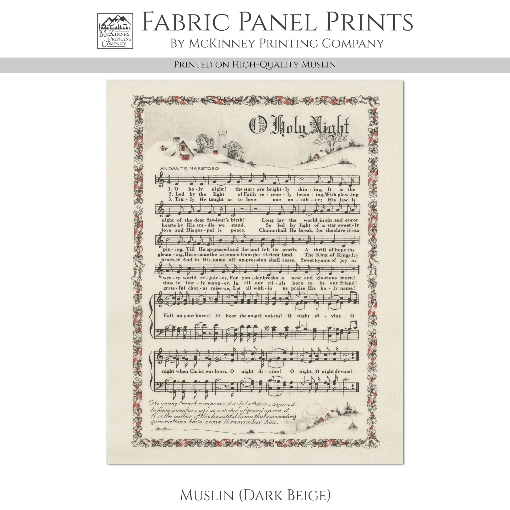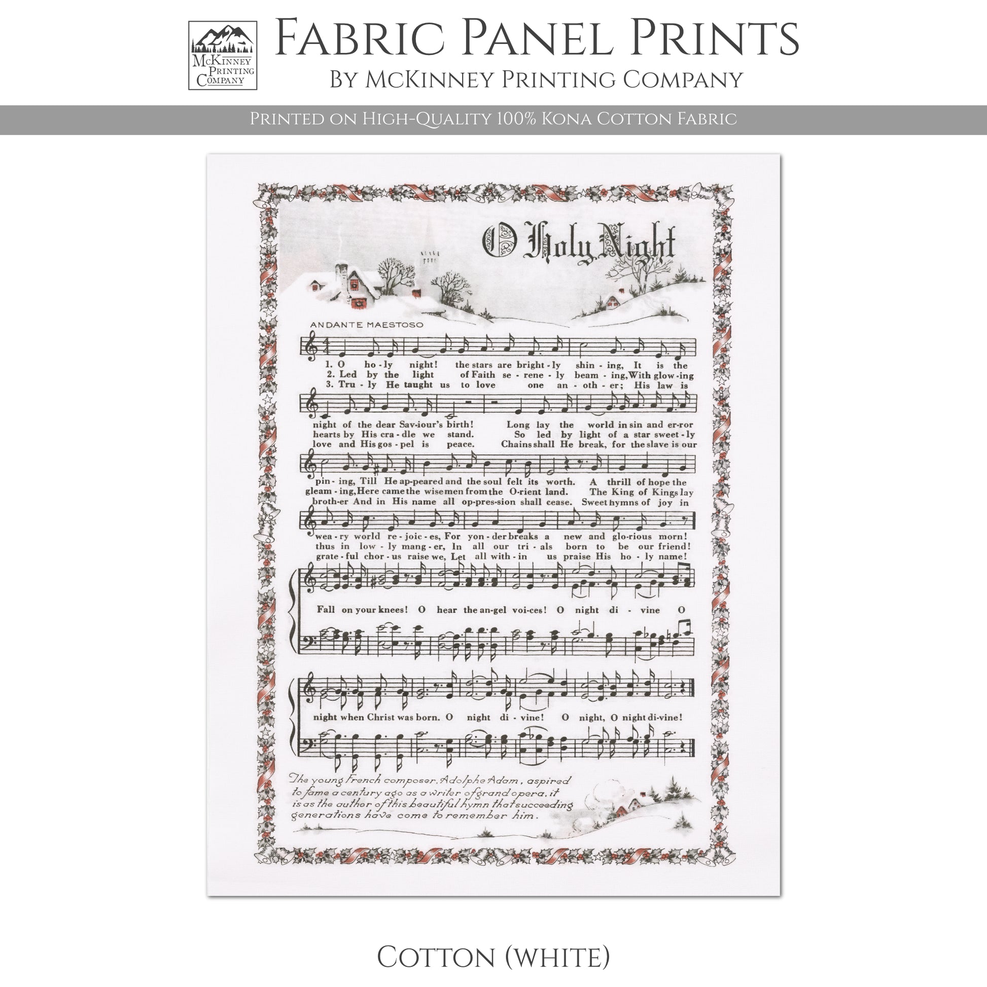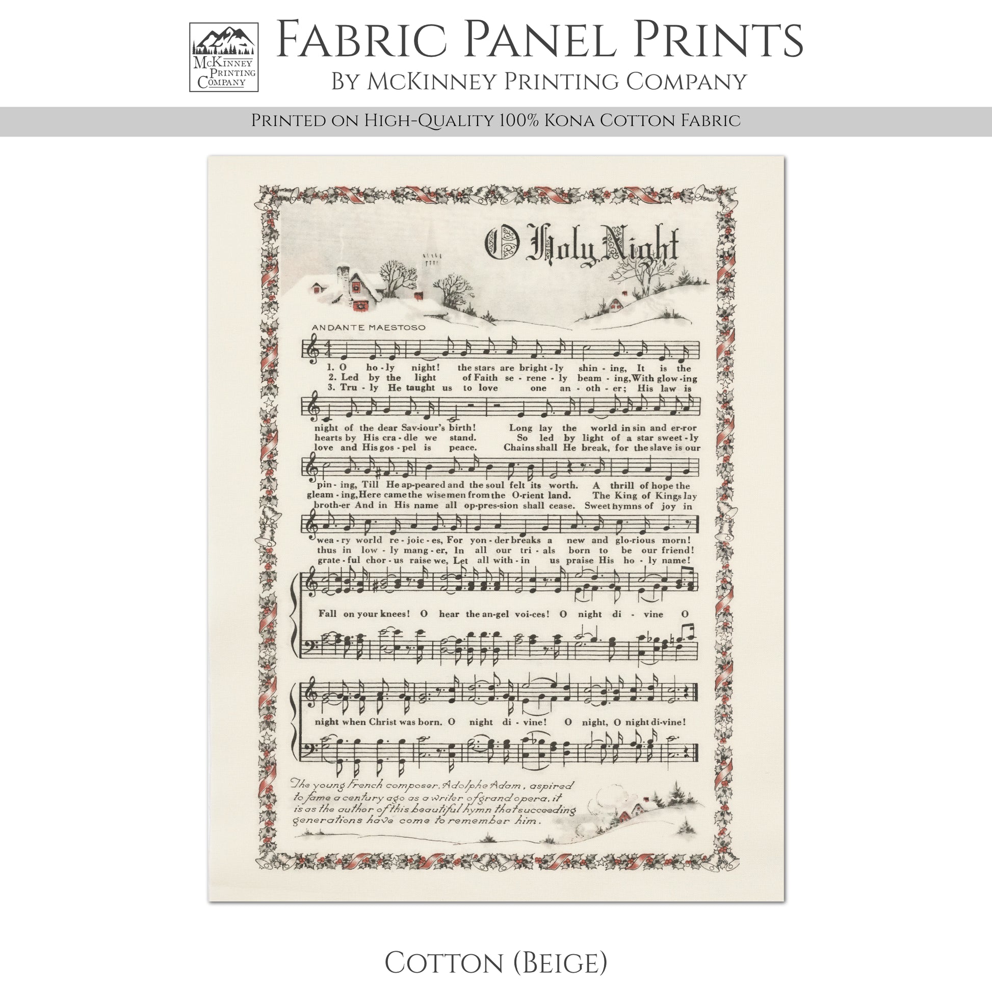 Oh Holy Night - Christmas Fabric Panel, Hymn Wall Art, Sheet Music, Lyrics, Quilting, Quilt, Wall Art, Cotton, Canvas