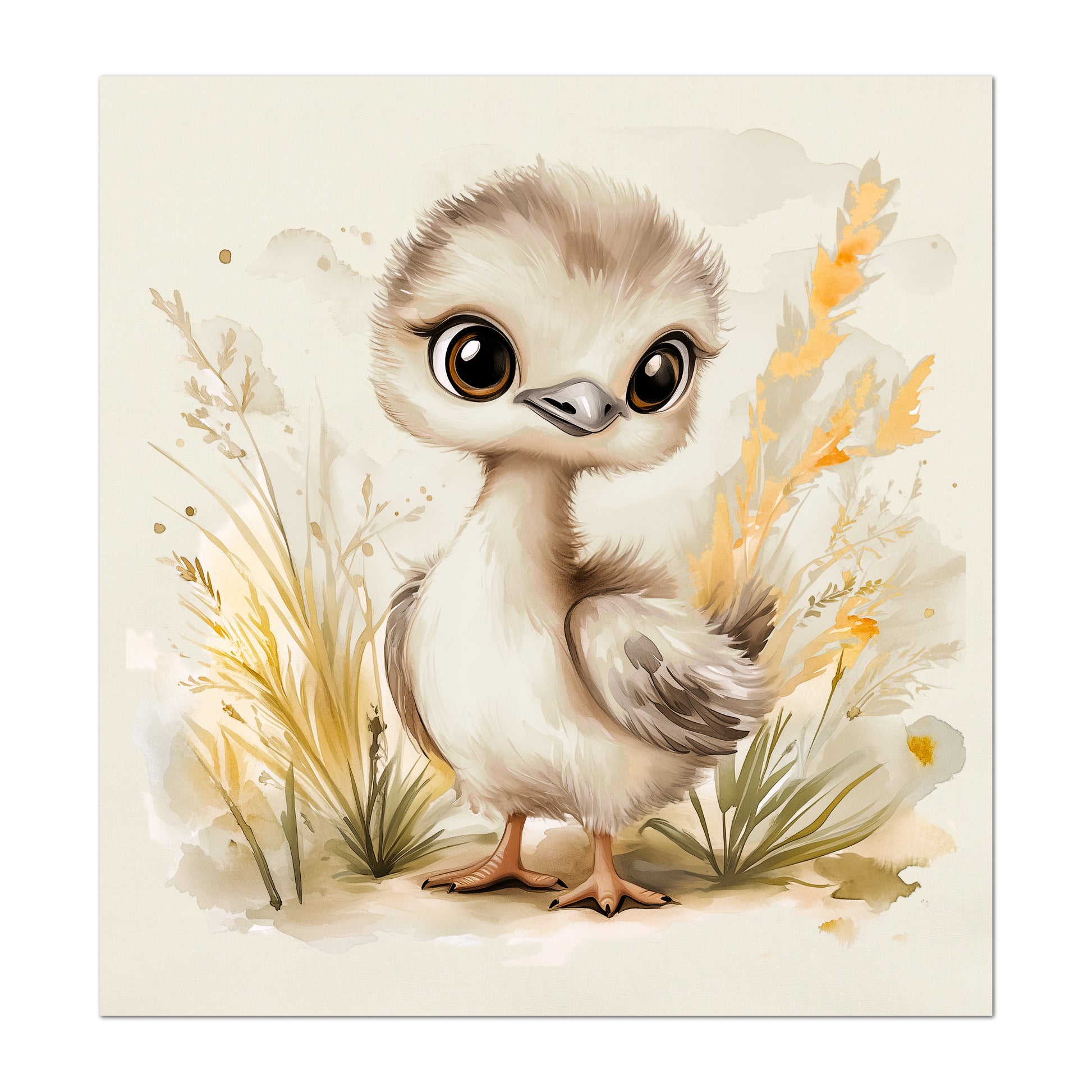 Ostrich - Baby Fabric Panels, Bird, Jungle, Animal, Nursery Décor, Quilt Block, Wall Art, Cotton, Quilting