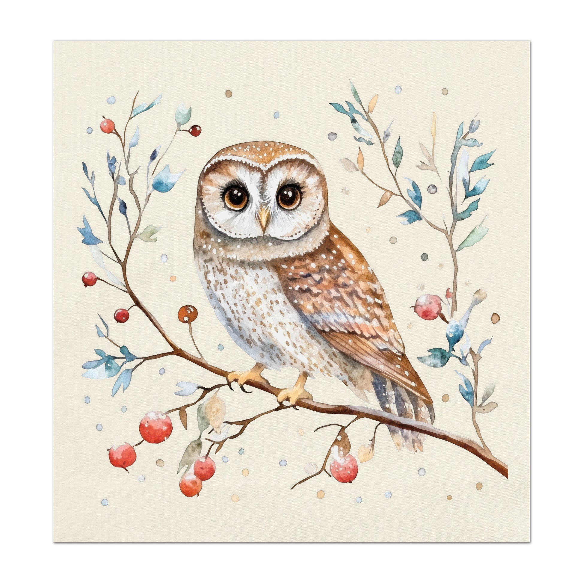Owl Fabric - Christmas Fabric Panel, Cotton, Bird, Animal, Decor, Wall Art, Large Print, Block Print, Cotton, Quilting, Quilt, Sewing, Crafts