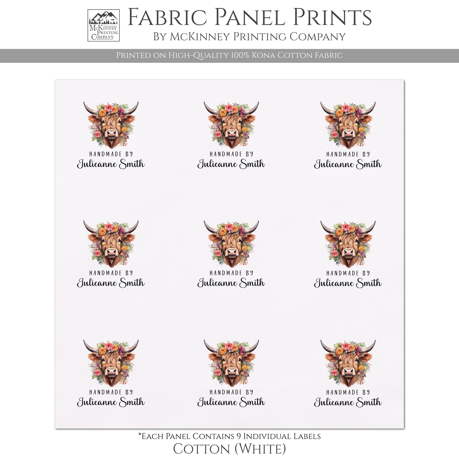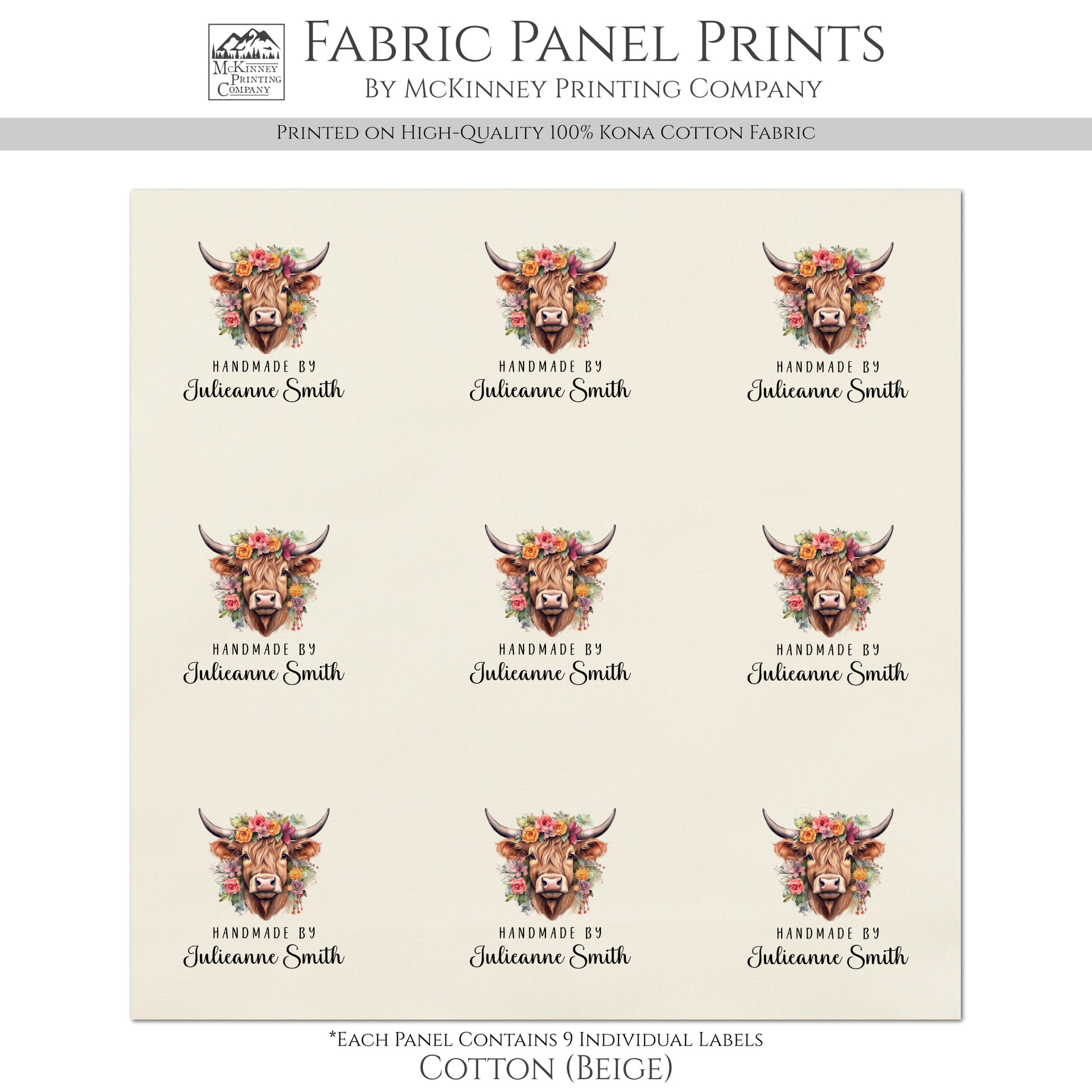 Quilt Labels - Highland Cow Fabric, Handmade, Fabric Tags, Personalized, Custom, Quilting, Crafting and Sewing Tags