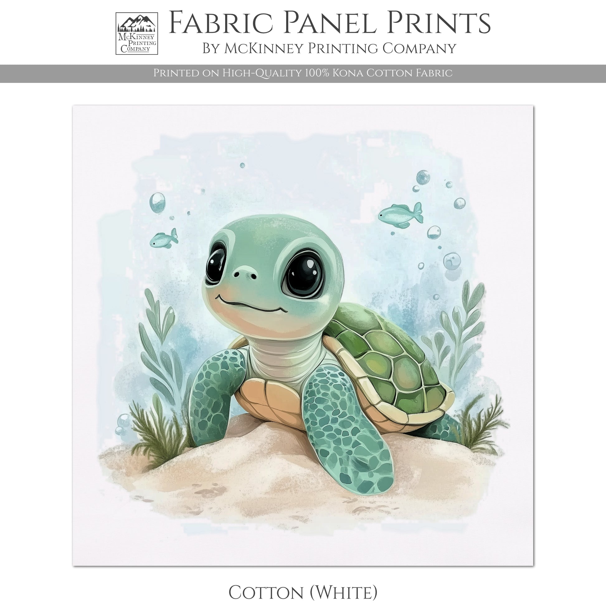 Sea Turtle Fabric - Baby Fabric Panels, Sea, Ocean, Boy, Blanket, Nursery Décor, Quilt Block, Cotton, Quilting