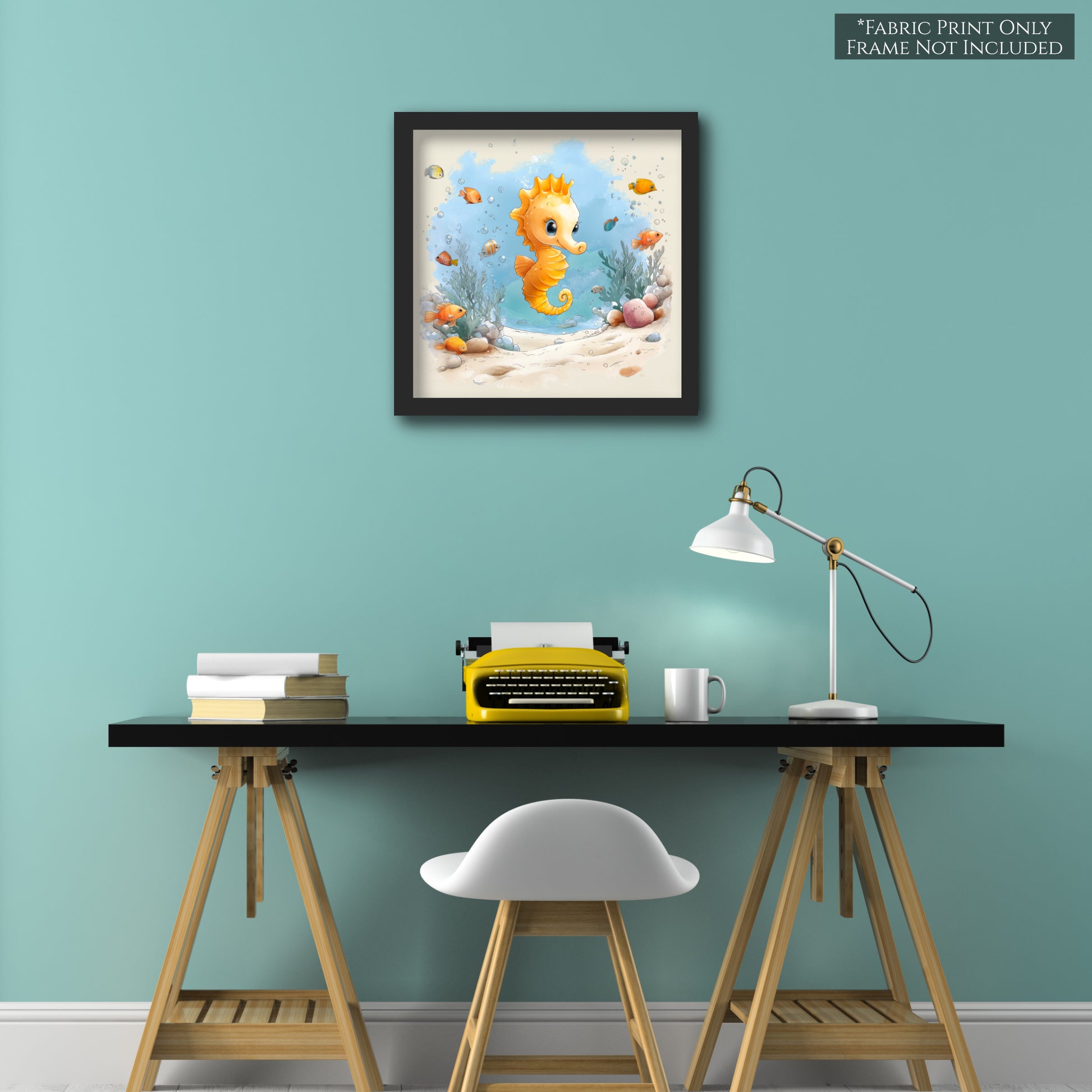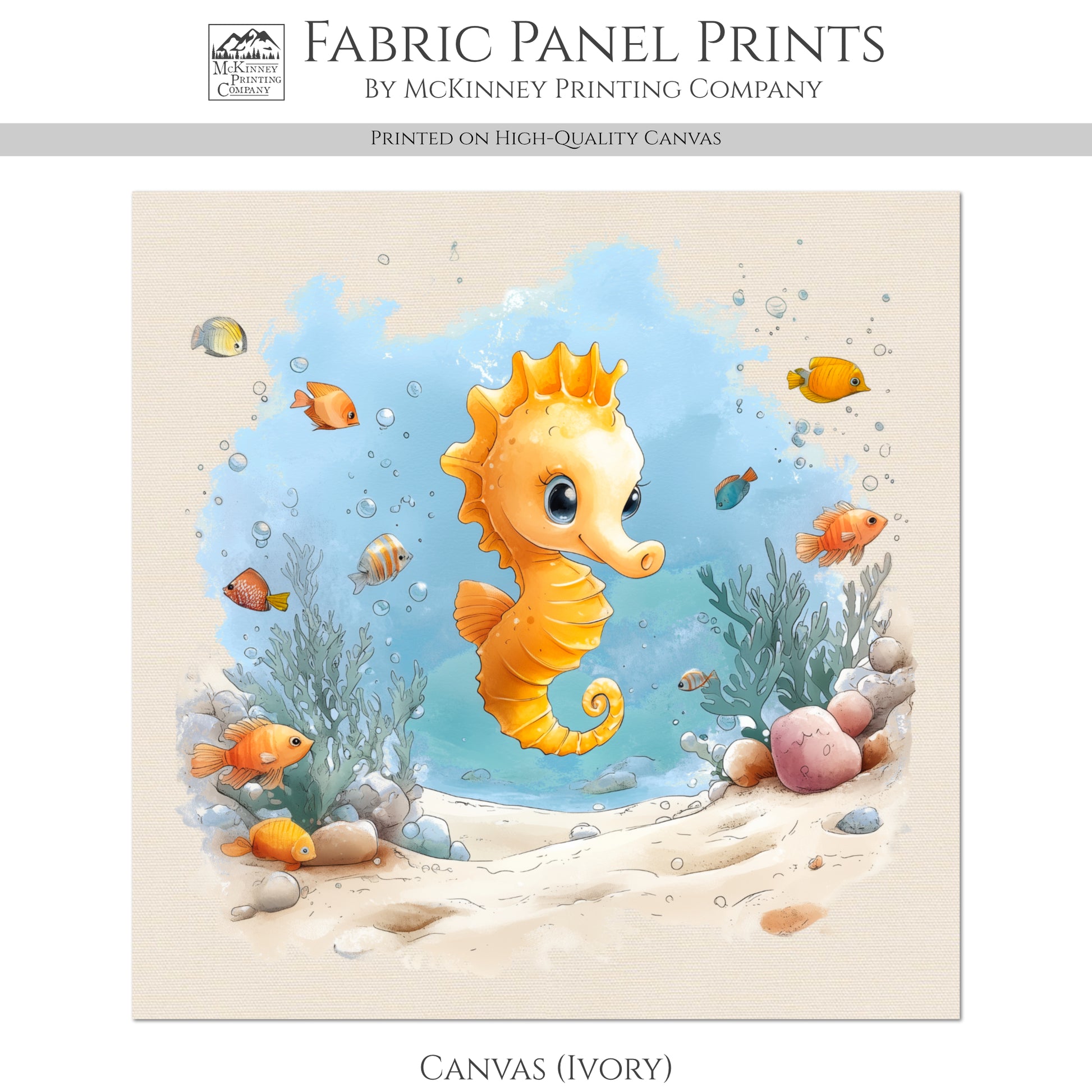 Seahorse Fabric - Baby Fabric Panels, Sea, Ocean, Boy, Blanket, Nursery Décor, Quilt Block, Cotton, Quilting