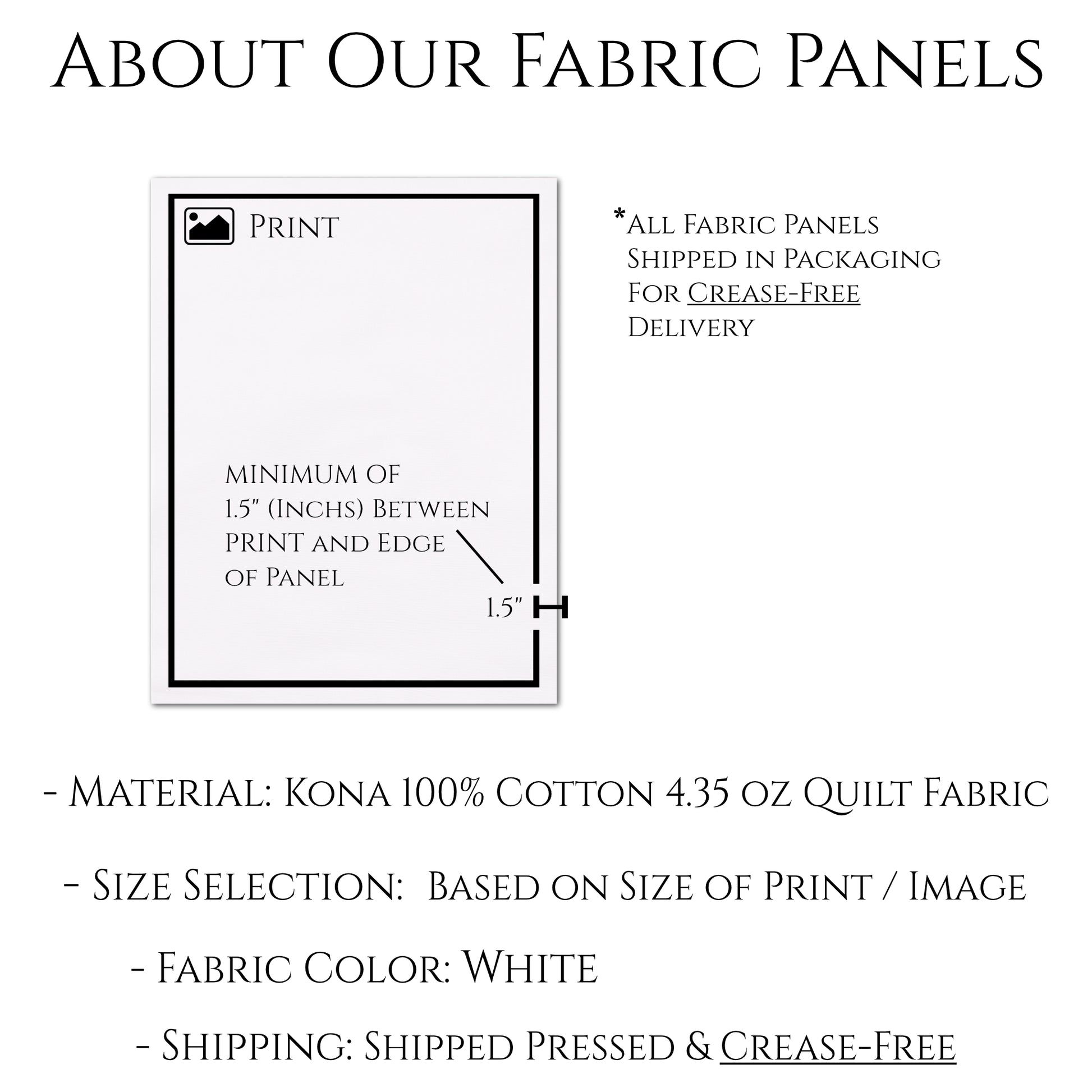 All of our fabric panels are machine washable and carefully packaged for crease-free delivery.