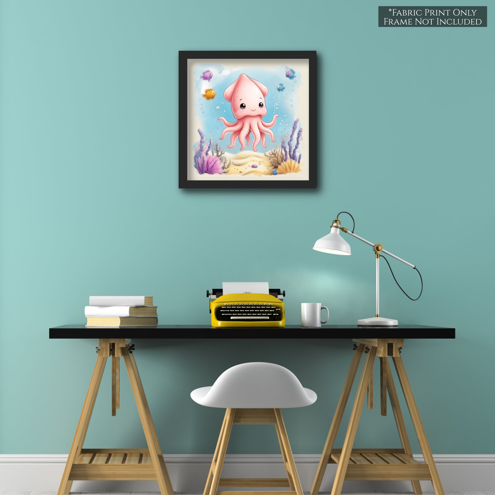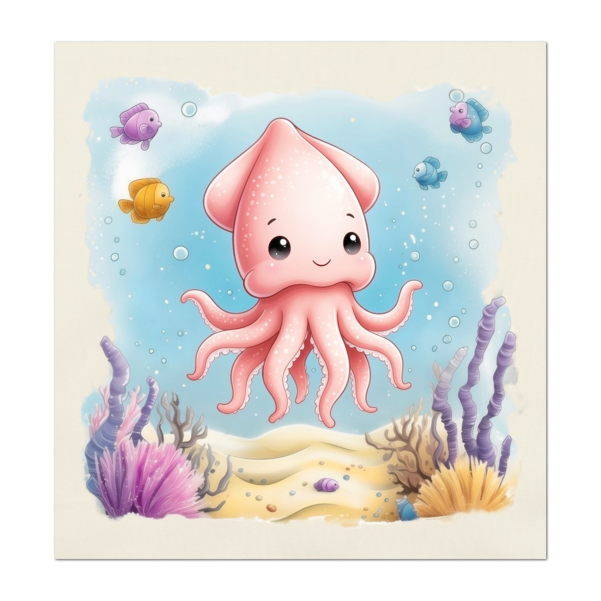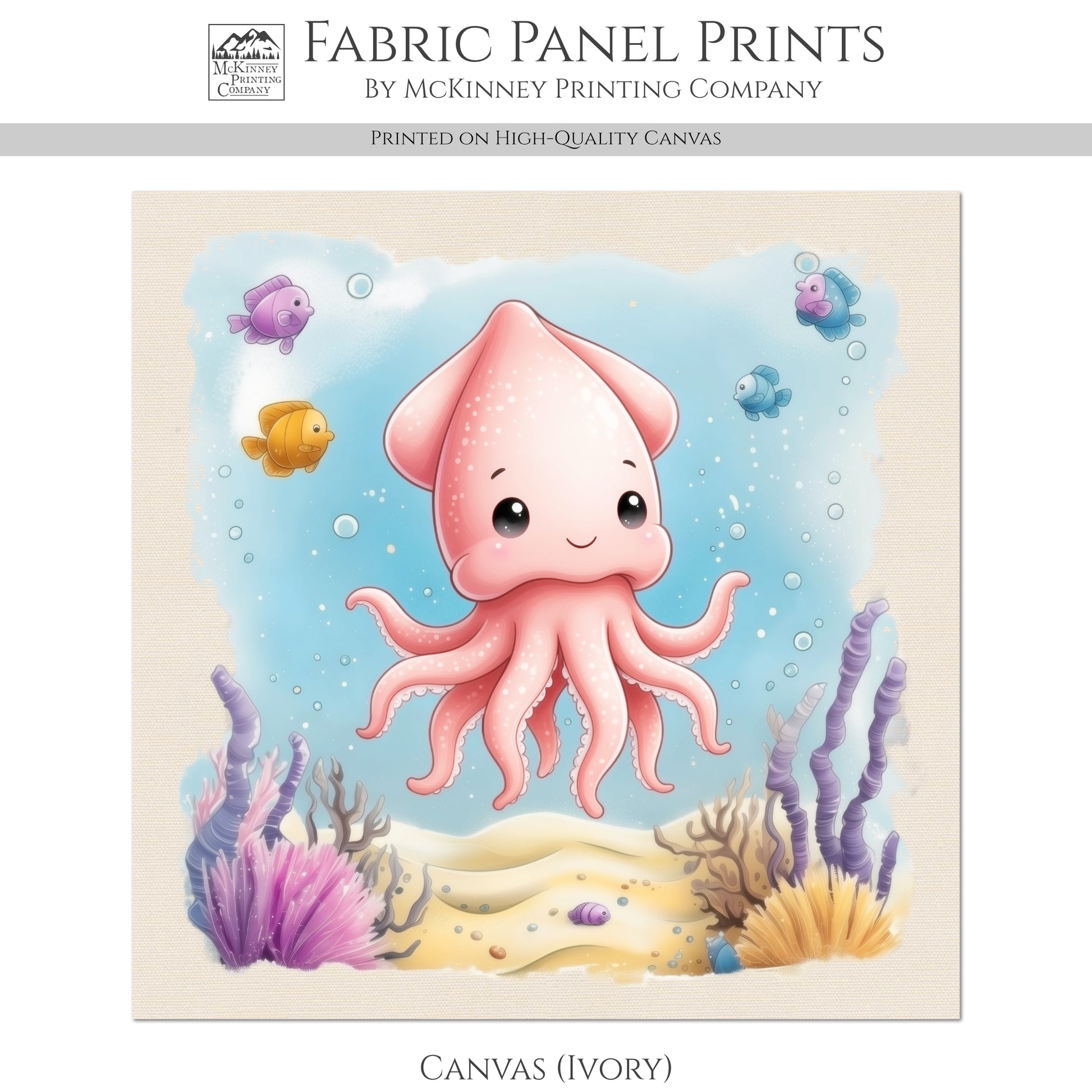 Squid - Ocean Animal Fabric, Baby Fabric Panels, Sea Creatures, Boy, Nursery Décor, Quilt Block, Cotton, Quilting