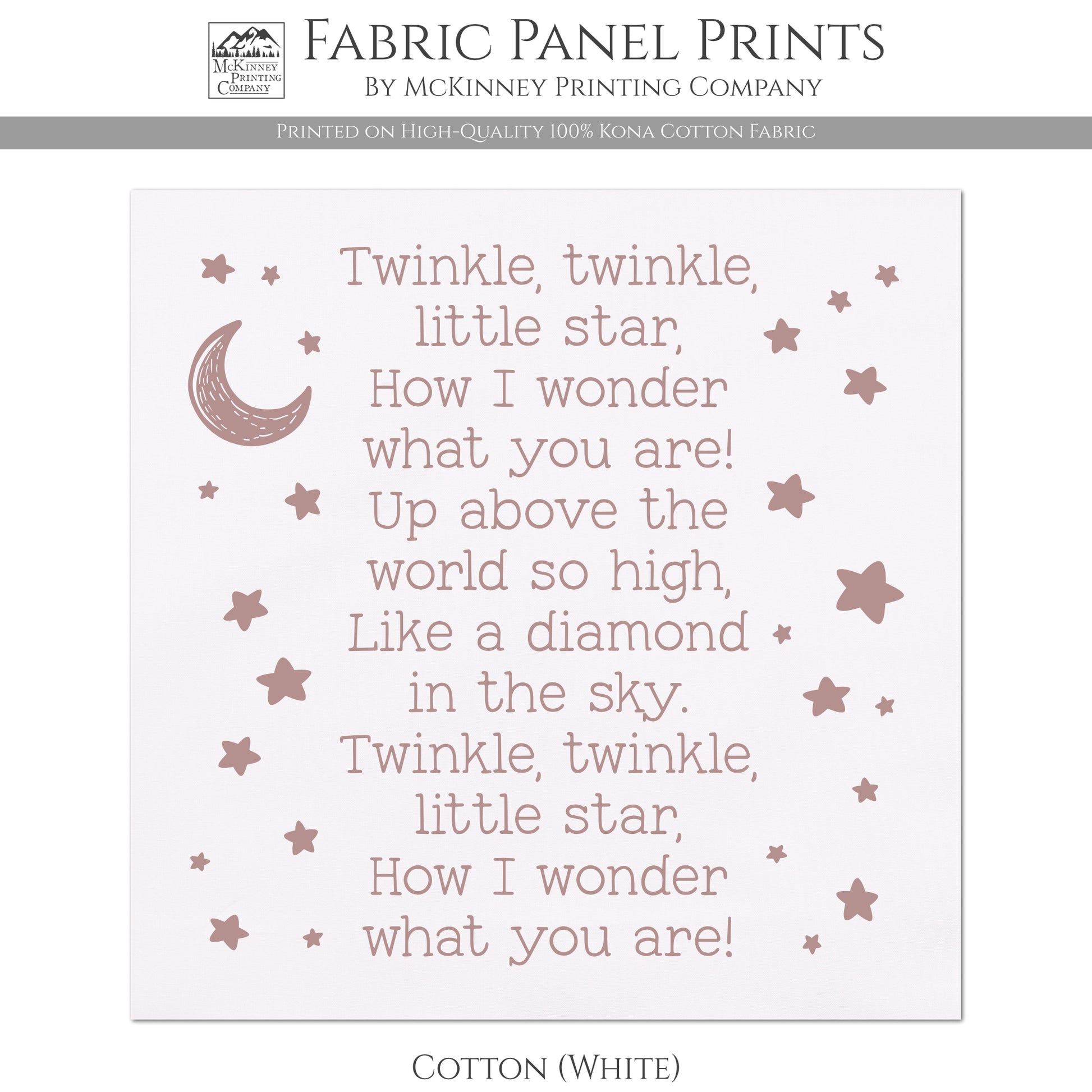 Twinkle Twinkle Little Star - Baby Fabric Panels, Nursery Rhyme, Wall Art, Decor, Cotton, Quilt Block, Baby Blanket, Infant, Sewing, Quilting