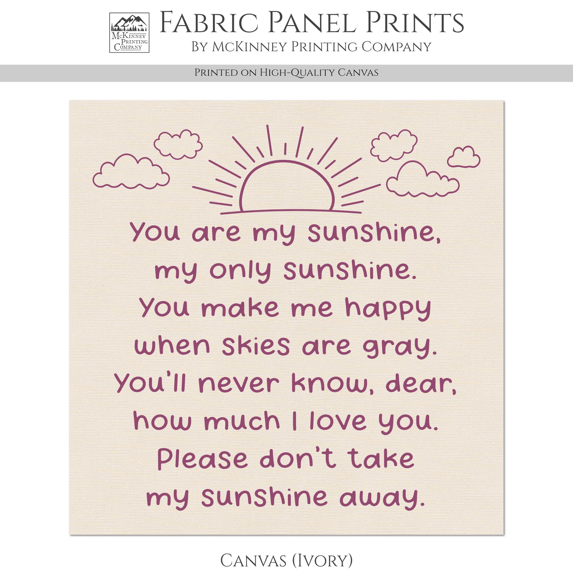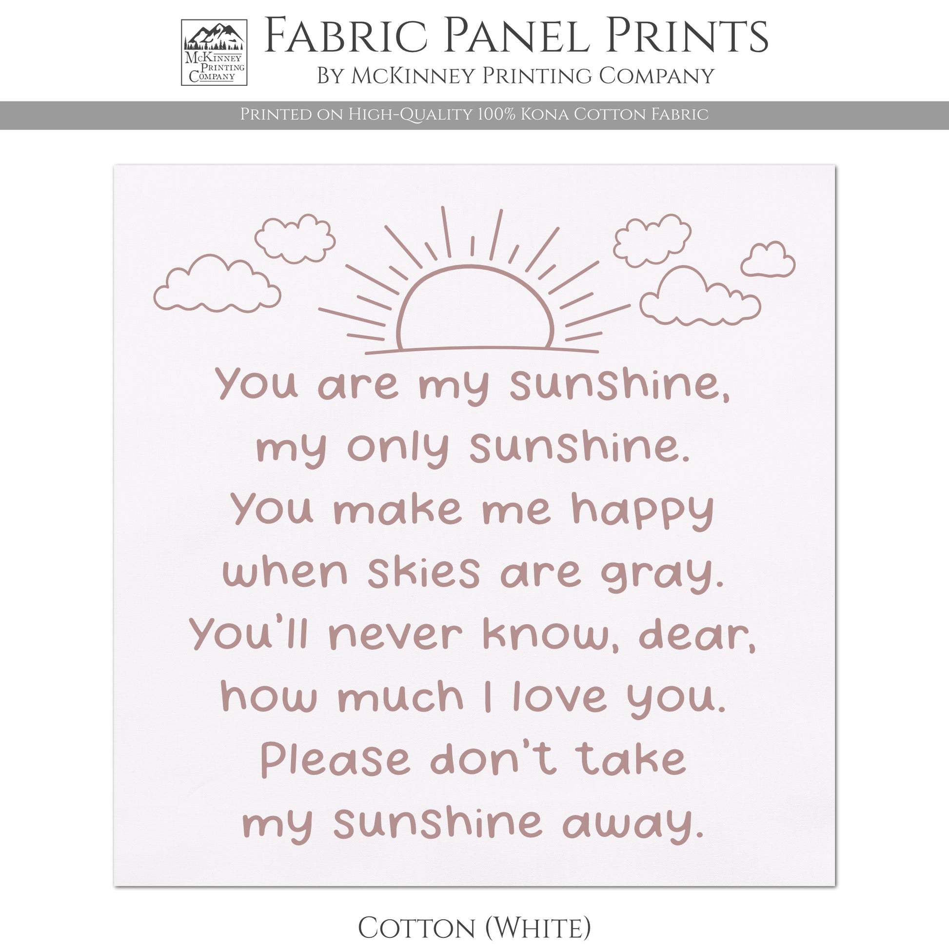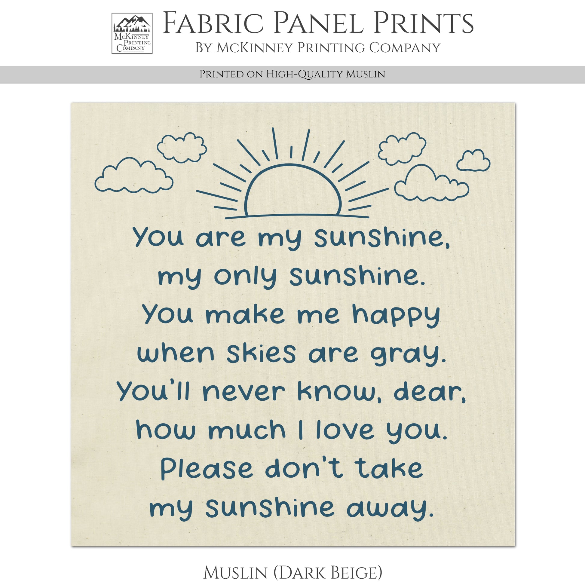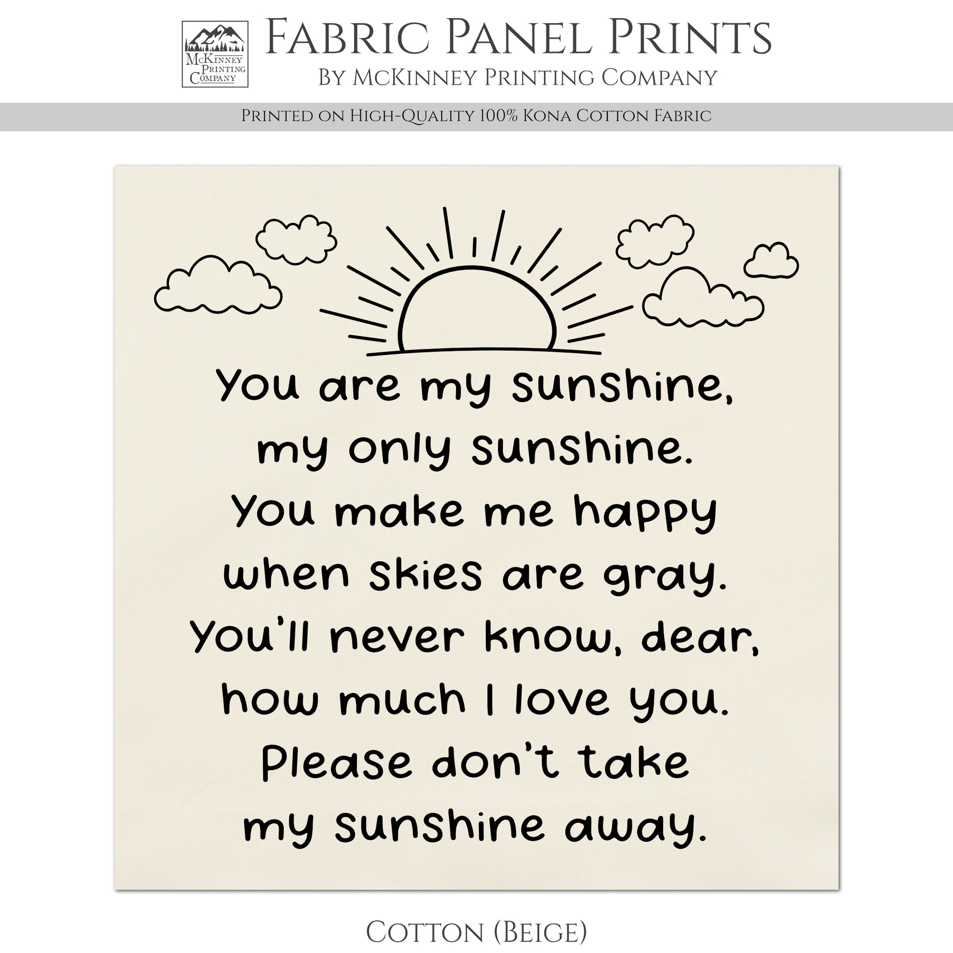 You Are My Sunshine - Baby Fabric Panels, Poem, Wall Art, Decor, Cotton, Quilt Block, Baby Blanket, Nursery, Infant, Sewing, Quilting